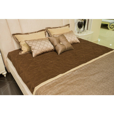Комплект состоит из покрывала размером 240*260 см (стежка "квадрат"), пледа размером 80*240 см, 2 подушек размером 50*70 см, 2 подушек размером 40*60 см, 1 подушки размером 45*45 см.