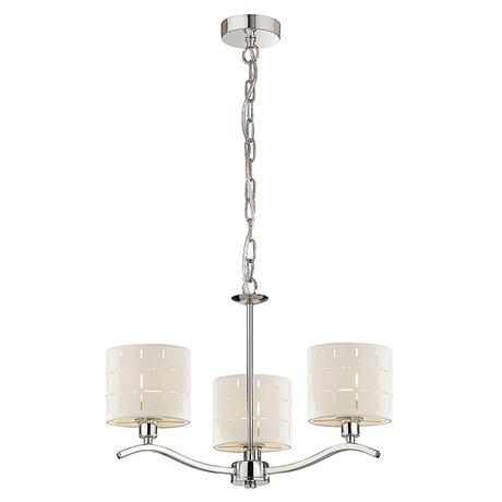 Бренд: Luce Solara; Коллекция: Moderno 5052; Количество ламп: 3; Мощность лампы, W: 60; Общая мощность, W: 180; Площадь освещения, м2: 10.00; Тип цоколя: E14; Тип лампочки (основной): Накаливания; Напряжение, V: 220; Степень защиты, IP: 20; Виды материалов: Текстильные; Материал арматуры: Металл; Материал плафонов: Ткань; Цвет: Белый; Цвет арматуры: Хром; Цвет плафонов: Белый;