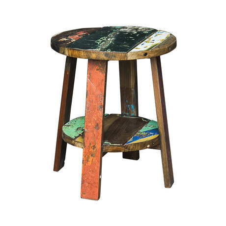 Тумба/табурет, выполненный из массива древесины старого рыбацкого судна, такой как: тик, махагони, суар, с сохранением оригинальной многослойной окраски.