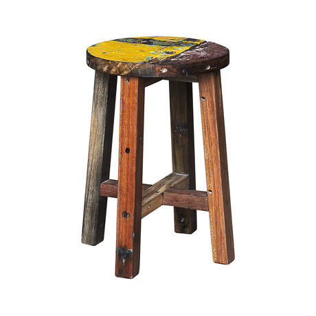Табурет, выполненный из массива древесины старого рыбацкого судна, такой как: тик, махагони, суар, с сохранением оригинальной многослойной окраски.