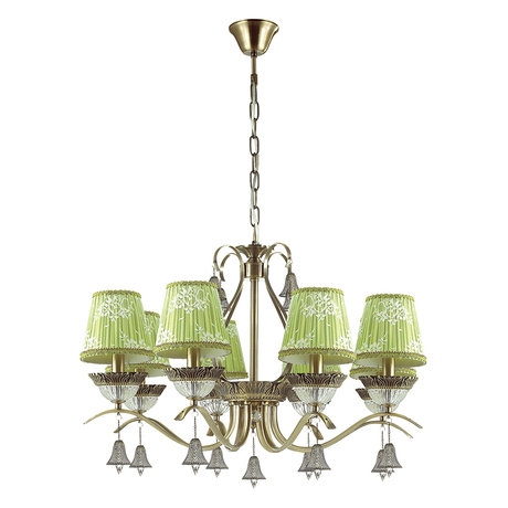Бренд: Odeon Light; Коллекция: Klimenta; Количество ламп: 8; Мощность лампы, W: 40; Общая мощность, W: 320; Площадь освещения, м2: 17.8; Тип цоколя: E14; Тип лампочки (основной): Накаливания; Напряжение, V: 220; Степень защиты, IP: 20; Виды материалов: Текстильные; Материал арматуры: Металл; Материал плафонов: Ткань; Цвет: Зеленый; Цвет арматуры: Бронза; Цвет плафонов: Зеленый; Место установки: На потолок.