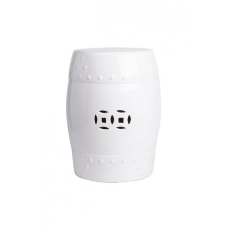 Оригинальный керамический столик-табурет, по своей форме напоминающий бочонок, в стиле модерн. Его кажущаяся массивной конструкция приобретает выразительность благодаря белому цвету. Данный столик вполне может выполнять функцию самостоятельного элемента декора, придавая интерьеру особую изысканность и индивидуальный стиль.