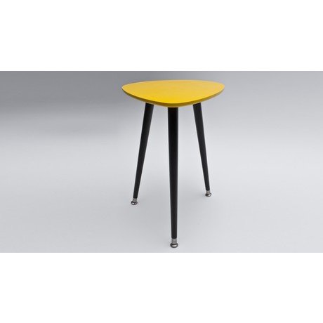 Верх и низ столещницы покрашены в желто-горчичный цвет и покрыты лаком; ножки покрашены в темно-коричневый цвет.