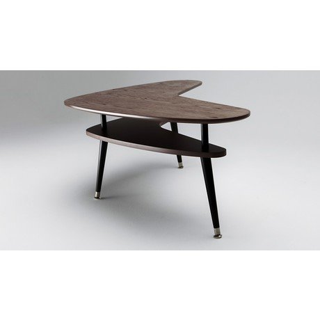 Верх столещницы покрыт крашеным в кофейный цвет дубовым шпоном; 2-ая столещница полностью покрашена в кофейный цвет; ножки покрашены в темно-коричневый цвет.